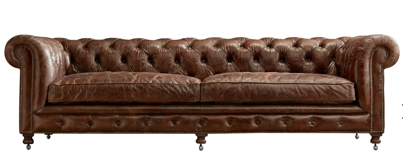 A Chesterfield sofa from Restoration Hardware anchors the space — strong, familiar, timeless.